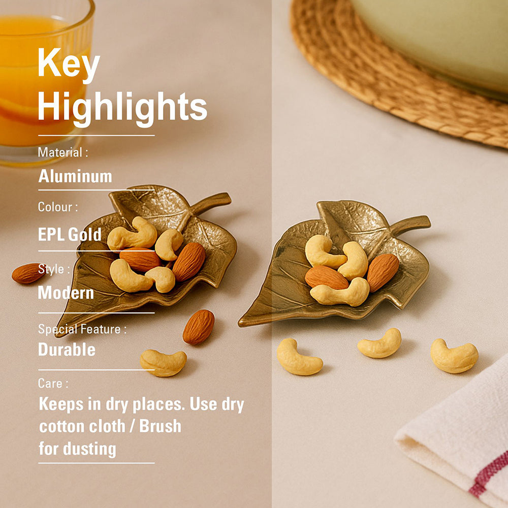 Elevate your home decor with our exquisite gold leaf-shaped dish, a stunning centerpiece that combines elegance and functionality. Crafted with a luxurious gold finish, this decorative tray features a delicate small gold leaf accent, making it perfect for displaying trinkets, jewelry, or as a standalone art piece. Its unique design adds a touch of sophistication to any room, making it an ideal gift for those who appreciate fine craftsmanship and style.