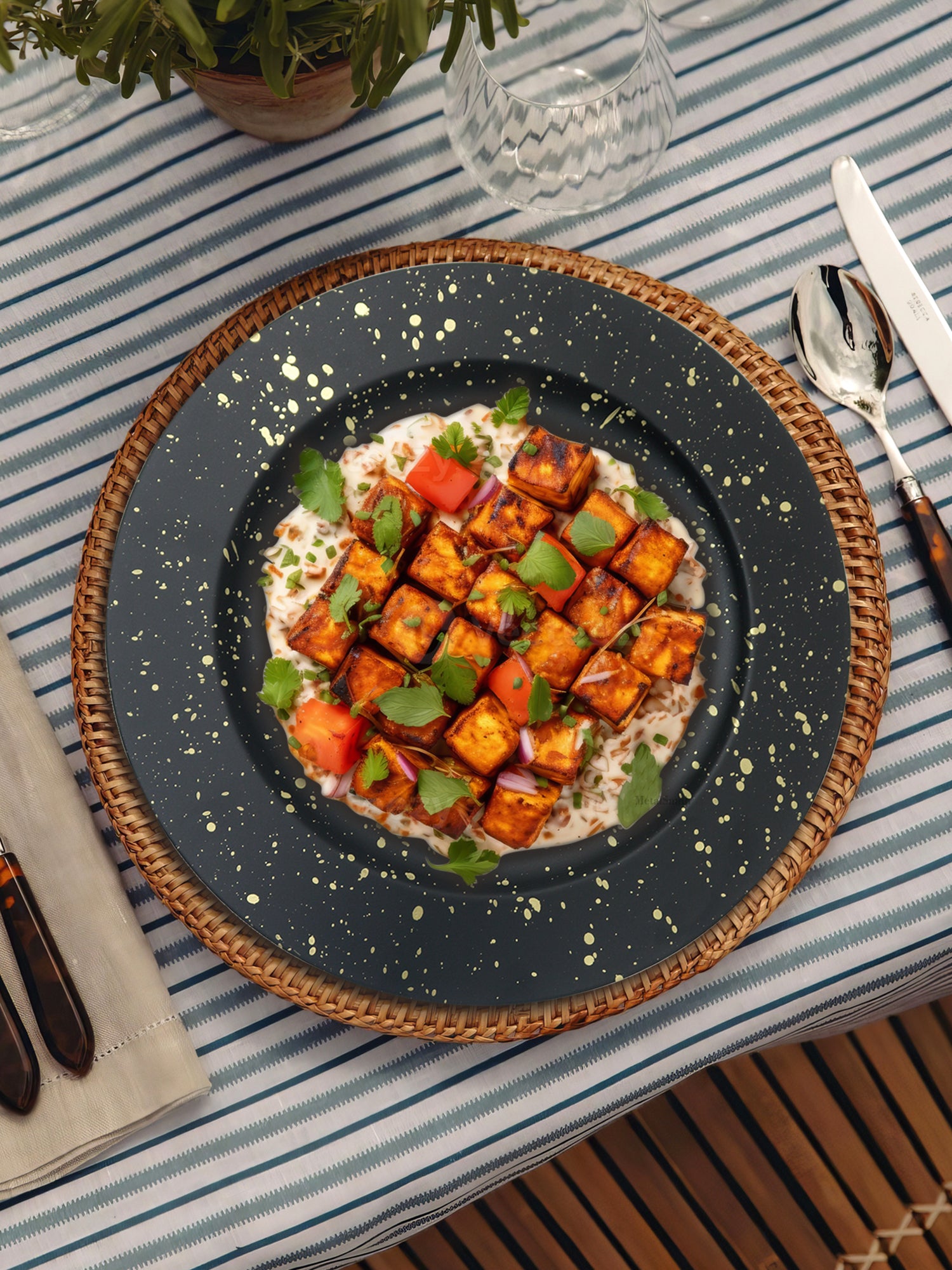 This elegant iron plate, against a pristine gold background, offers a refreshing and modern aesthetic for any dining experience. Its vibrant hue adds a touch of sophistication, making it ideal for both casual meals and formal occasions. Crafted with high-quality materials, this plate is not only visually appealing but also durable and easy to maintain, ensuring it remains a staple in your tableware collection