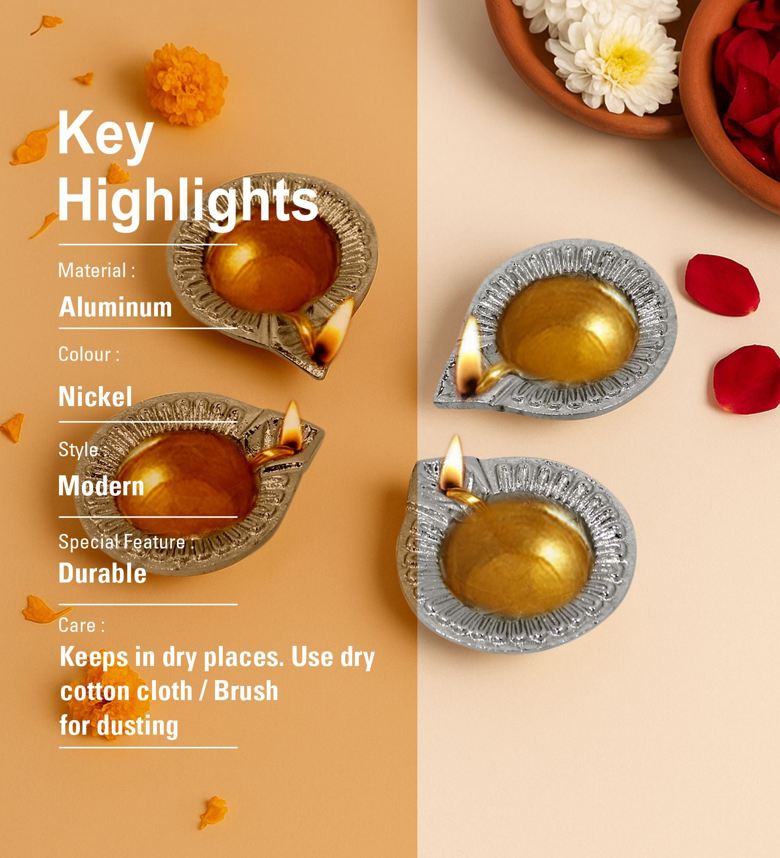 Pack Of 4 Aluminium Diyas For Pooja And Gift